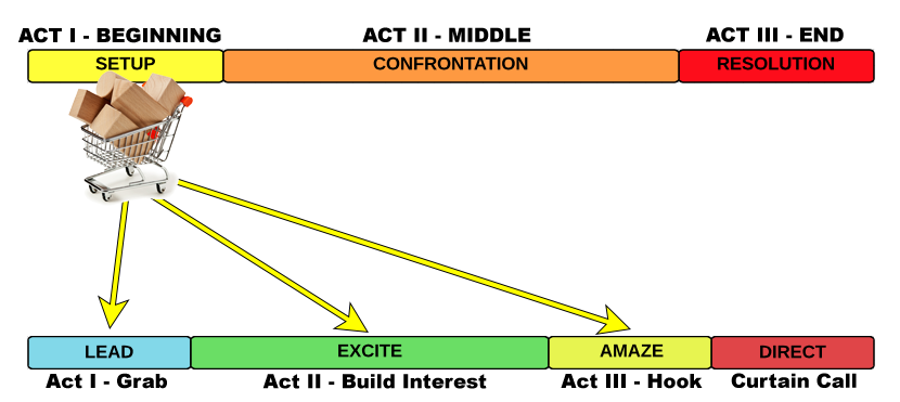 A trailer is created with building blocks from Act I of the book. The trailer can be thought of as a three-act structure also, but with a twist, the curtain call.